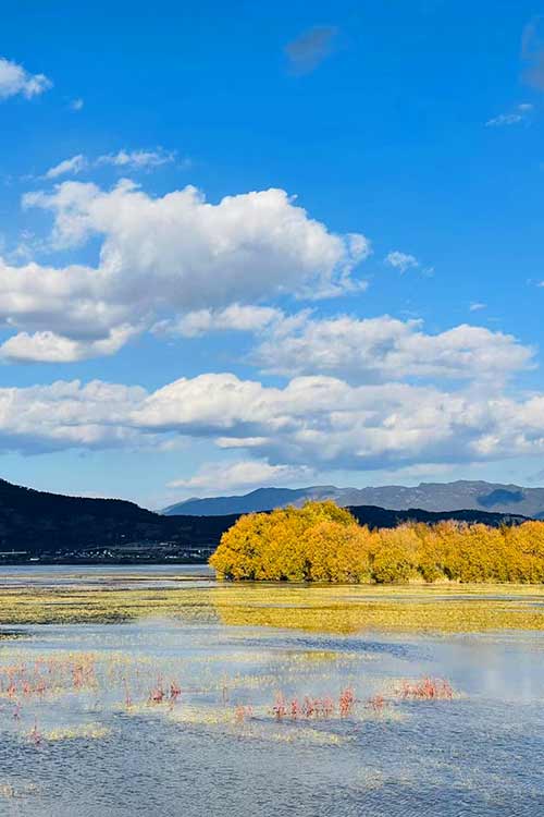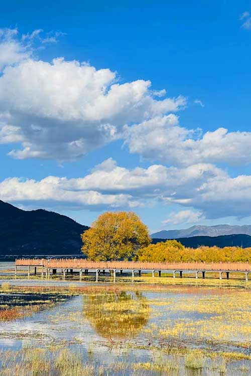 拉市海的秋天,如同一位风韵犹存的少妇,带有一种成熟的美,在这里你可以享受悠闲的时光,泛舟、烤太阳、发呆。。。( 李婷拍摄)