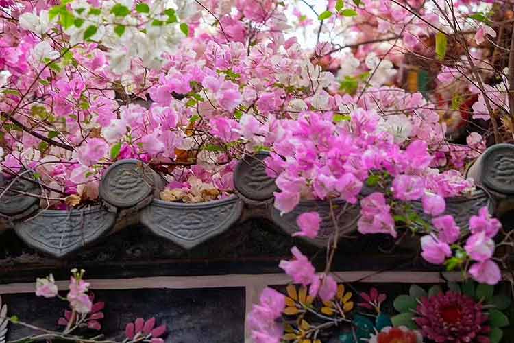 春天的丽江古城,大街小巷争先盛放的是三角梅。或墙头垂下千寻花瀑,或枝头堆成精···