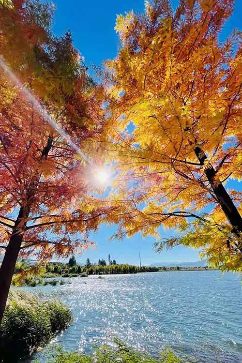 丽江初冬的暖阳还是那么的热情,天还是最清澈的湛蓝,年复一年的杉树林小伙伴们,···