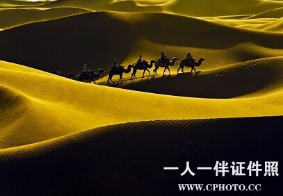 不同的构图方法可以把人、动物更好地安排在画面中,可以给画面增加画面的看点。无论什么情况下,一副优秀的作品绝对是具备了精美的光影效果。当太阳照在驼队身上在沙漠中投下长长的光影时,一定要抓住这个机会,不停地按动手中的快门,试着从不同的角度去拍摄下此刻的画面。
