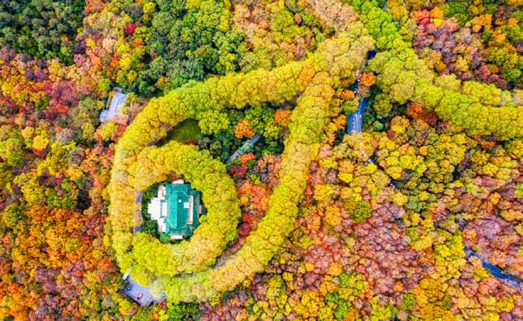 拍摄秋景时,大多数照片往往就是一幅纯景,没有新意,这时可以在画面中加入一个视···