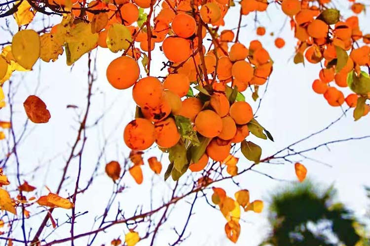 蓝天做背景,拍柿子可以用仰拍的方式,以蓝天为背景,湛蓝衬托红彤彤、黄澄澄的柿···